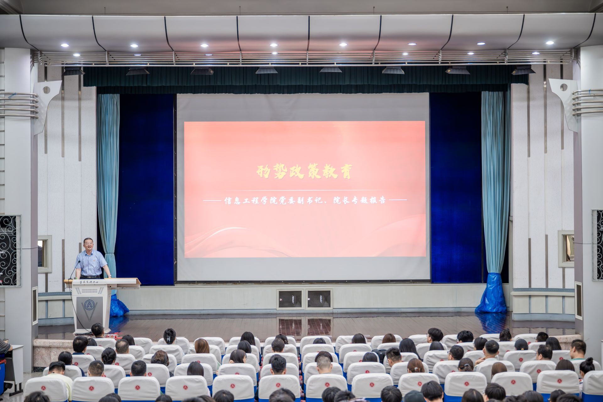 6月17日下午,信息工程乐鱼网页版登录入口在学术交流中心举办“深化作风强担当 锐意进取促发展”主题活动,乐鱼网页版登录入口领导班子全体成员、全体师生党员和学生入党积极分子代表共计300余人参加。